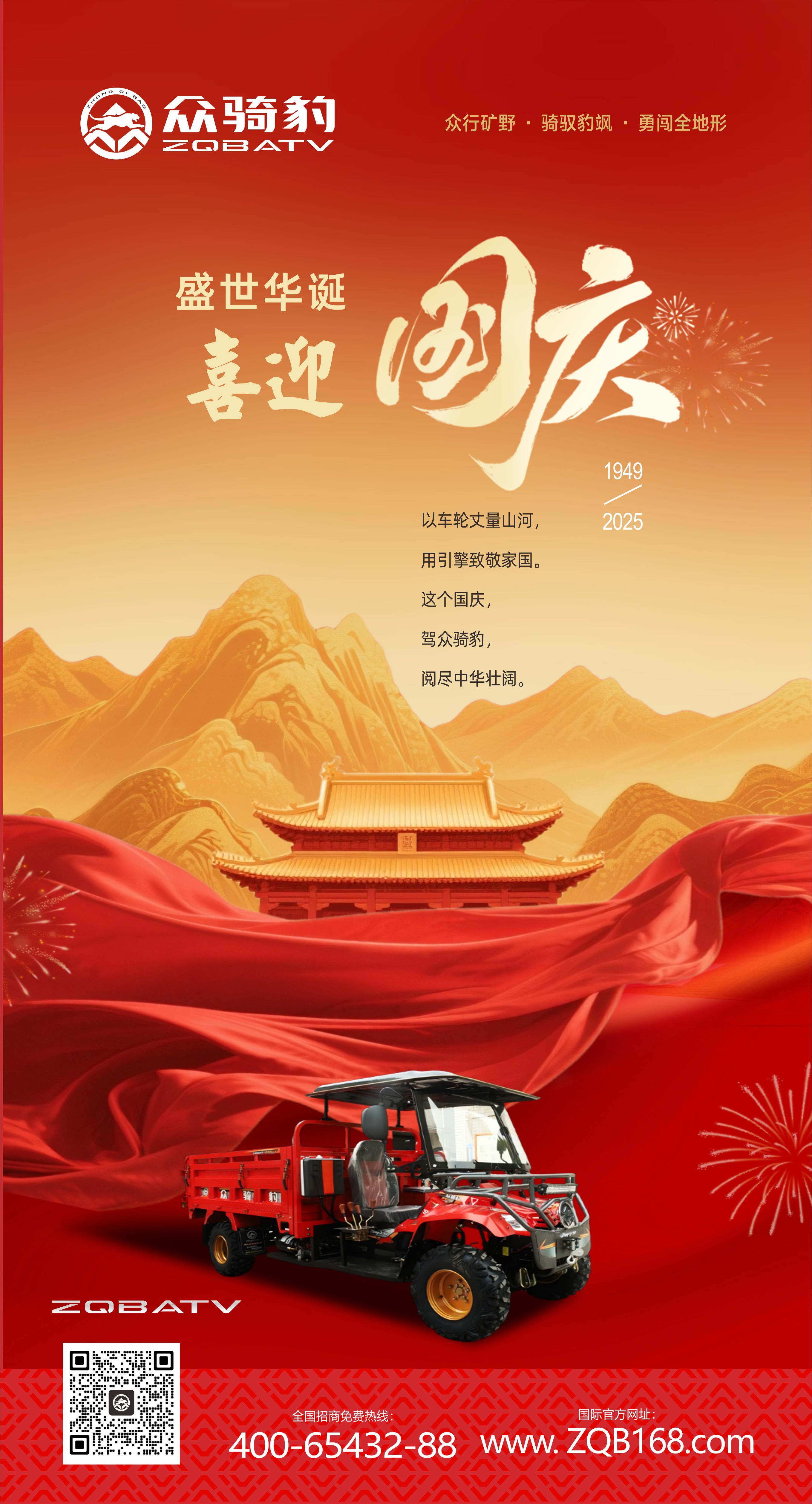 “众行旷野・骑驭豹飒・勇闯全地形”,这句品牌口号恰是众骑豹实力的写照。2025 年国庆,正值 “盛世华诞・喜迎国庆”,1949-2025 的岁月长河里,众骑豹以 “车轮丈量山河,引擎致敬家国” 为初心,用每一款高品质全地形车,陪伴人们阅尽中华壮阔。无论是助力生产、丰富休闲,还是守护安全,众骑豹都以匠心承载责任,让品牌力量与家国盛世同频共振,引发每一位读者对 “国货品质” 的认同,对 “家国情怀” 的共鸣。